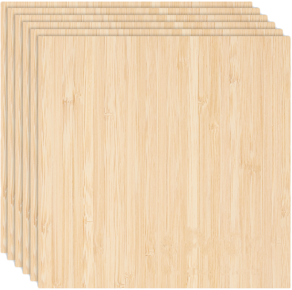 Pakkauksessa on 6 kappaletta 3 mm Bamboo Board (300 x 300 mm).