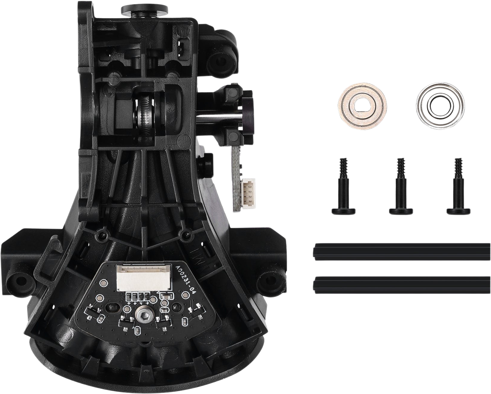 Bambu Lab AMS 2 Pro Internal Hub Unit on järjestelmän keskeinen vaihtamis- ja kuljetusmoduuli. Se sijaitsee AMS 2 Pro:n takana ja yhdistää useita tarkkuuskomponentteja: neljä Hall-anturia, magneettisen kiertosäätimen sekä tehokkaan moottorin. Yhdessä nämä mahdollistavat luotettavan automaattisen materiaalivalinnan ja vakaan filamenttisiirron.