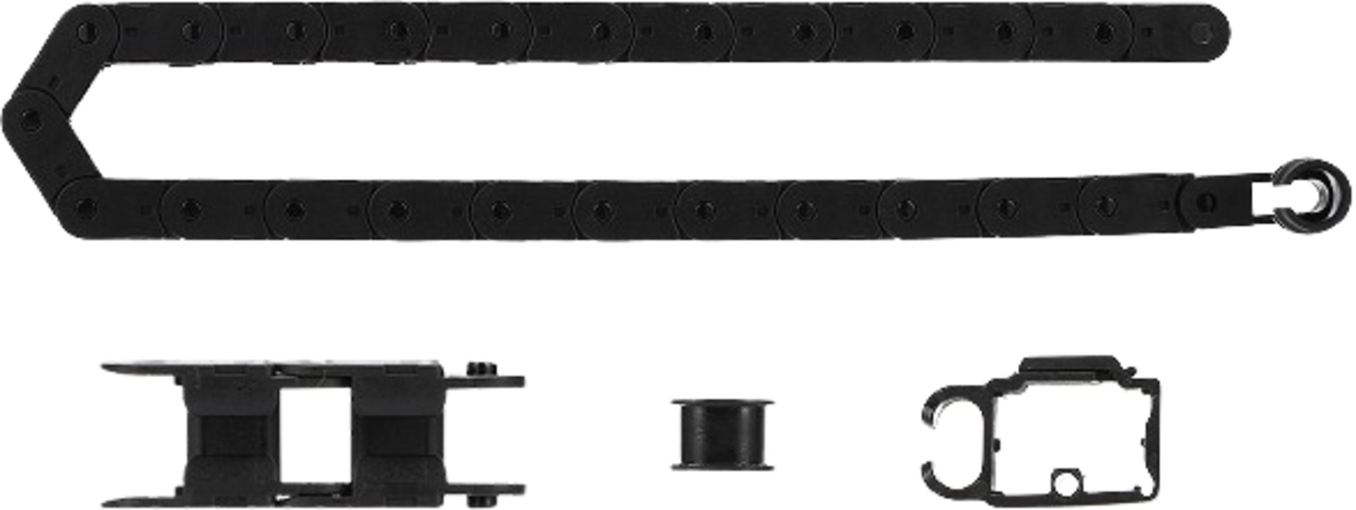 Bambu Lab Cable Chain Assembly varmistaa, että työkalupään kaapeli ja filamenttiletku kulkevat tulostuksen aikana turvallisesti ja hallitusti vaakatasossa. Näin estetään johtojen hallitsematon liike ja niiden takertuminen tulostustilaan.