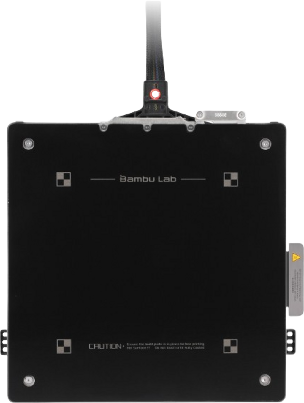 Bambu Lab Heatbed - HV on lämmitetty tulostusalusta, joka sijaitsee tulostuskammion sisällä ja liikkuu Z-akselilla ylös ja alas. Lämpenemällä määriteltyyn lämpötilaan se parantaa merkittävästi mallin ja tulostusalustan välistä tarttuvuutta ja auttaa samalla vähentämään vääntymistä (Warping).