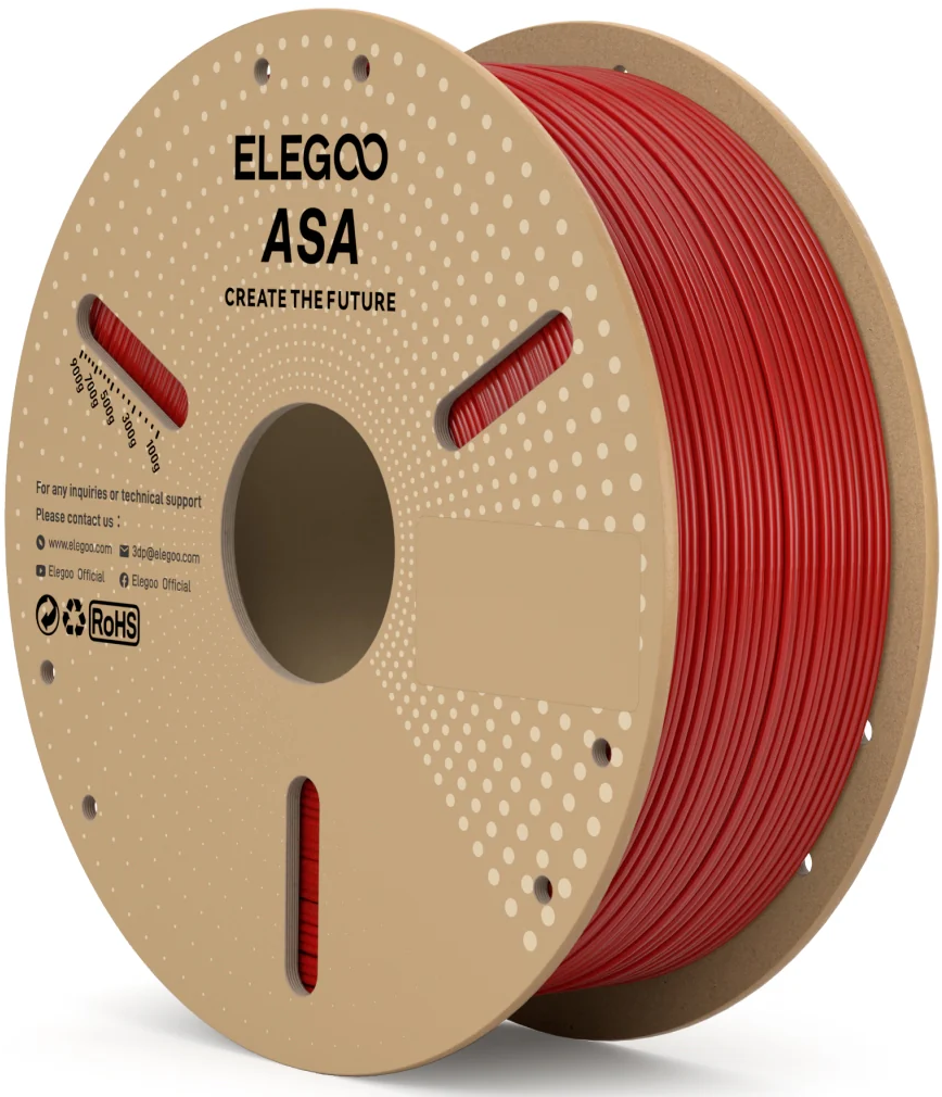 ASA Elegoo on kestävä ja sitkeä materiaali, joka parannetun lämmönkestävyytensä ansiosta sopii erinomaisesti toiminnallisten osien tulostamiseen. Materiaali kestää korkeita lämpötiloja säilyttäen mekaaniset ominaisuutensa jopa erittäin korkeissa käyttölämpötiloissa. Erinomaisen UV- ja säänkestävyyden ansiosta materiaali soveltuu myös ulkokäyttöön.