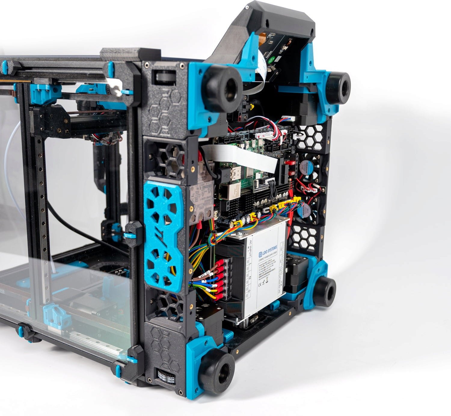 Järjestelmän sydämessä toimii LDO Leviathan -pääpiirilevy yhdessä Nitehawk-36 Toolhead -levyn kanssa – tehokas elektroniikkaratkaisu nopeaan tiedonsiirtoon, tarkkaan liikkeenhallintaan ja siistiin kaapelin hallintaan.