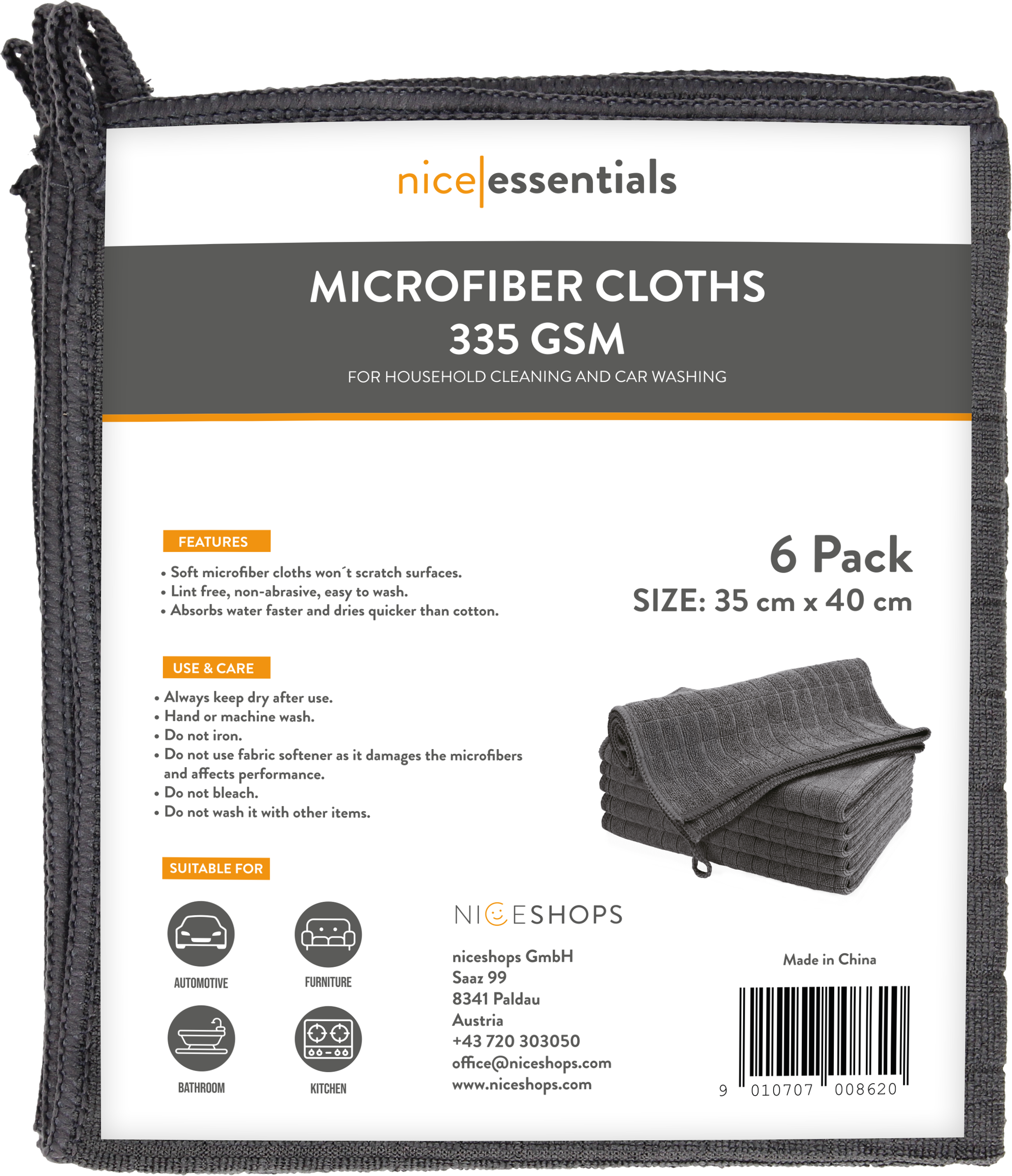 nice essentials Mikrokuituliinat 35 x 40 cm setti, 6 Kpl