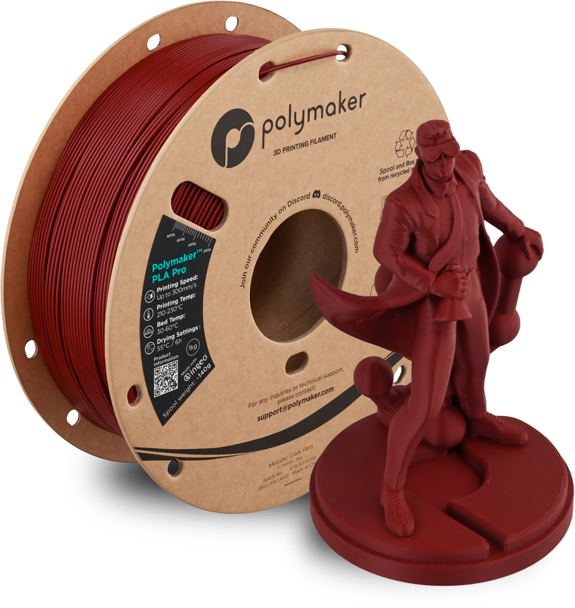 Kysymykset ja vastaukset tuotteesta Polymaker PLA Pro Metallic Dark Red