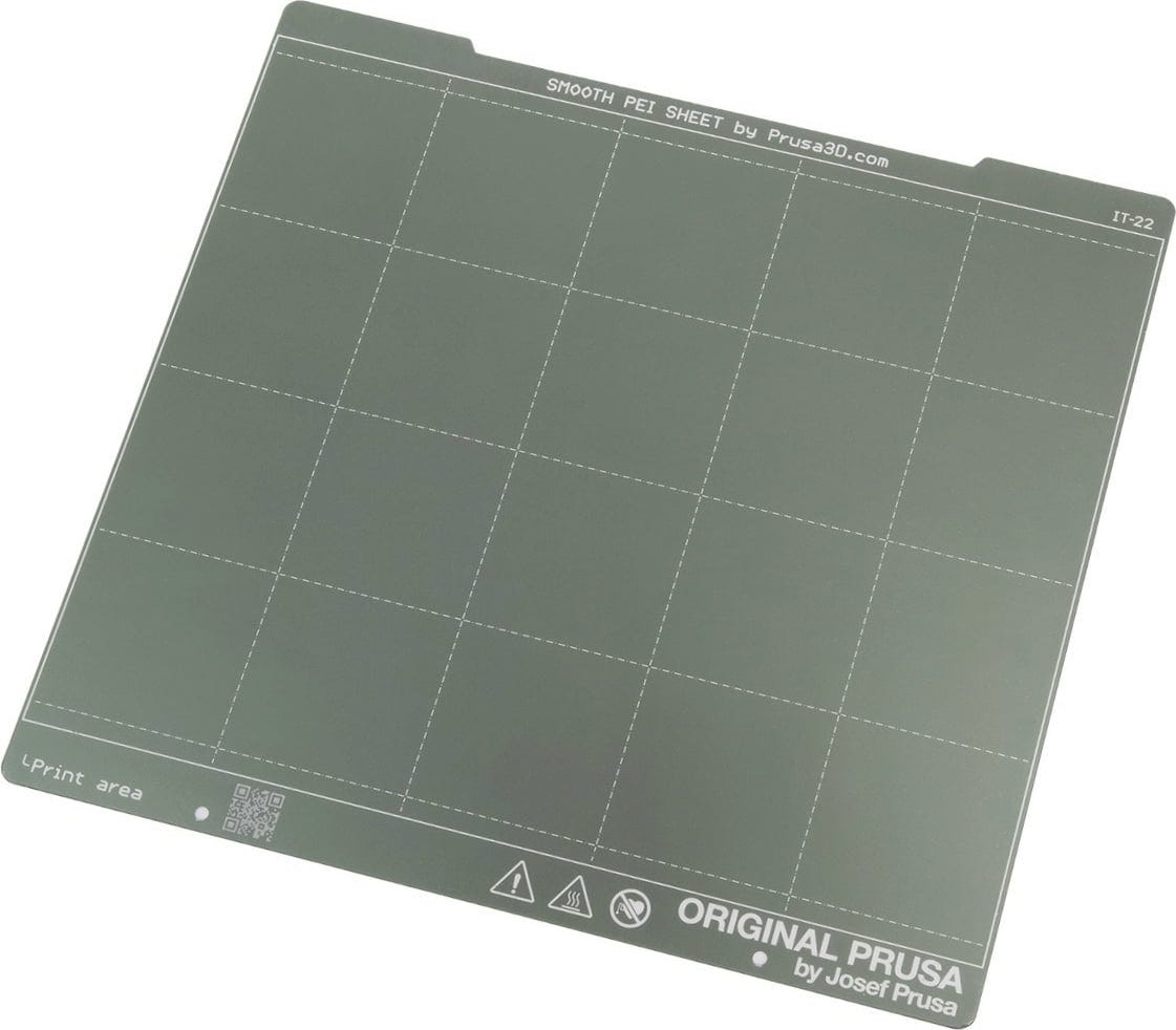 Prusa Smooth PEI Print Sheet on joustava teräslevy, jossa on kaksipuolinen PEI-pinnoite. Se sopii täydellisesti Prusan lämpöalustalle. Levyn paikoillaan pitämisestä huolehtivat erittäin voimakkaat magneetit, joiden Curie-lämpötila on korkea. Sileä PEI-pinta luo tulosteillesi kauniin, tasaisen alareunan – ilman kuvioita, mutta hienon kiillon kera.
