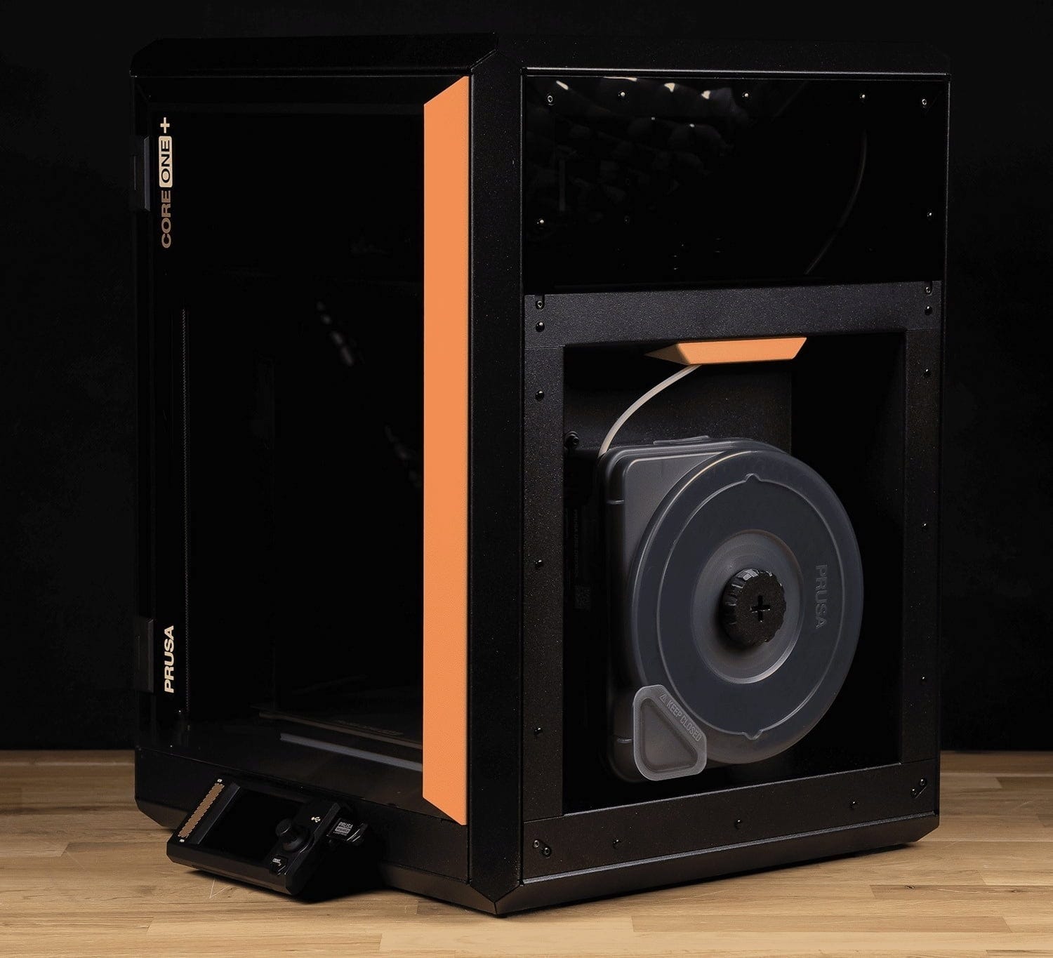 Tärkeät tiedot: Prusa USS Drybox sopii suoraan Prusa CORE One+ ja CORE One L:n bajonettikelanpidikkeeseen. Käyttö muiden 3D-tulostinten kanssa on myös mahdollista, jos käytössä on sopiva kelauspidike bajonettikiinnityksellä. Tulostimille, joissa ei ole vastaavaa järjestelmää, voidaan tarvita adapteri, joka on tällä hetkellä itse luotava tai yhteisöltä saatava. Drybox on yhteensopiva useimpien 1000 g:n filamenttikelojen ja lukuisten filamenttityyppien kanssa. Voit tulostaa suoraan Prusa USS Dryboxista. Integroitu ja tiivis PTFE-lähtö mahdollistaa kitkattoman filamenttisyötön, samalla kun laatikon sisus pysyy ilmatiiviinä ja kosteudelta suojattuna. |