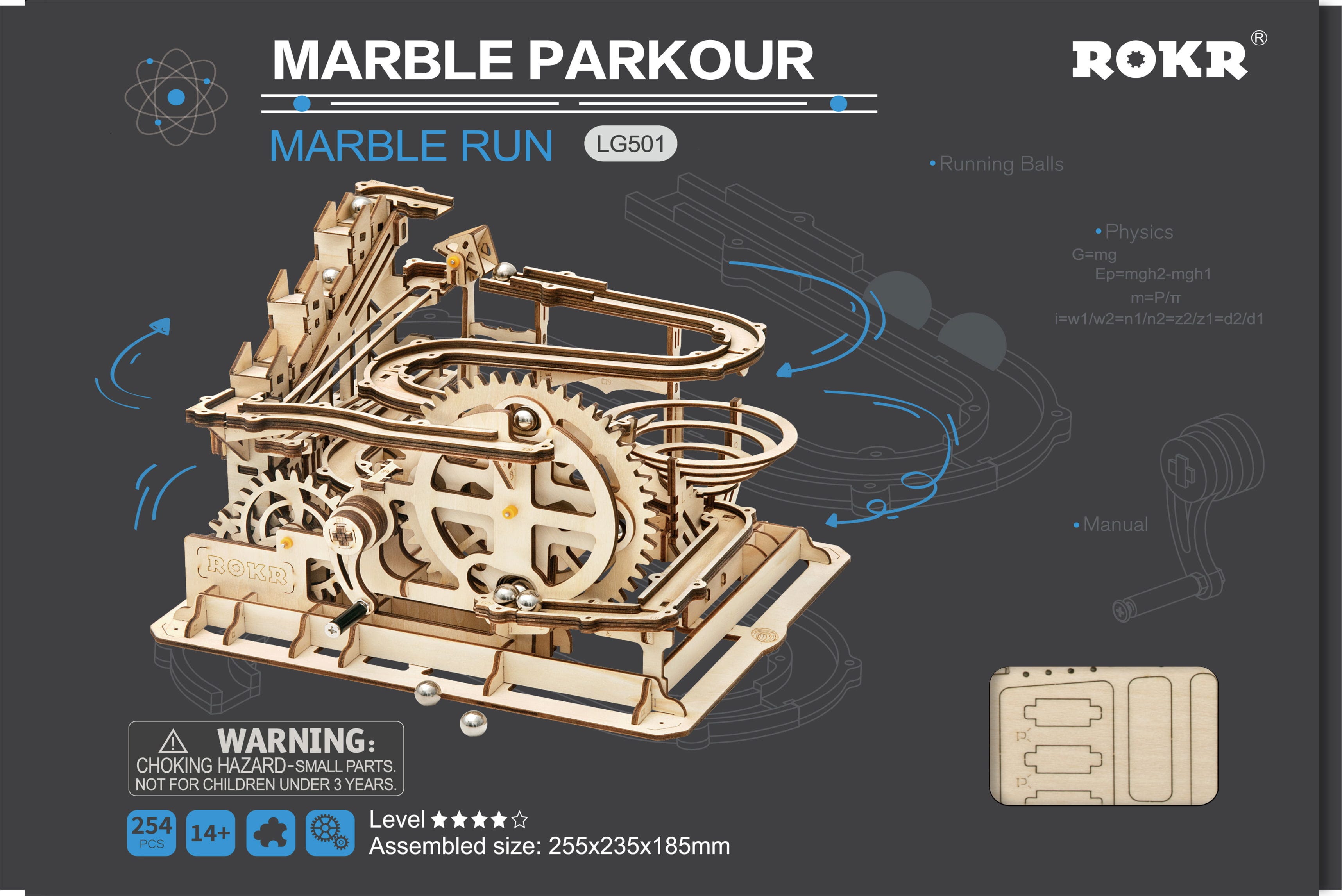 Valmiina nousuihin, mutkiin ja vauhtiin? ROKR Marble Parkour on mekaaninen 3D puupalapeli, joka herättää henkiin upean vesipyöräkäyttöisen marmorikuula-vuoristoradan. Aidoista puuosista rakennat askel askeleelta toimivan rakenteen, jossa marmorikuulat nostetaan ylös, kiihdyttävät ja kulkevat laskujen, mutkien ja silmukoiden läpi.