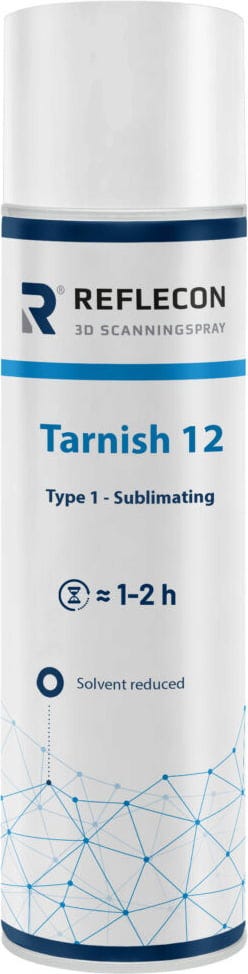 Reflecon Tarnish 12 on haihtuva pintakäsittelyaine, joka optimoi pintojasi optista 3D-laserskannausta varten. Se luo tasaisen, matan pinnoitteen ja parantaa skannaustarkkuutta heijastavilla, kiiltävillä tai läpinäkyvillä komponenteilla.