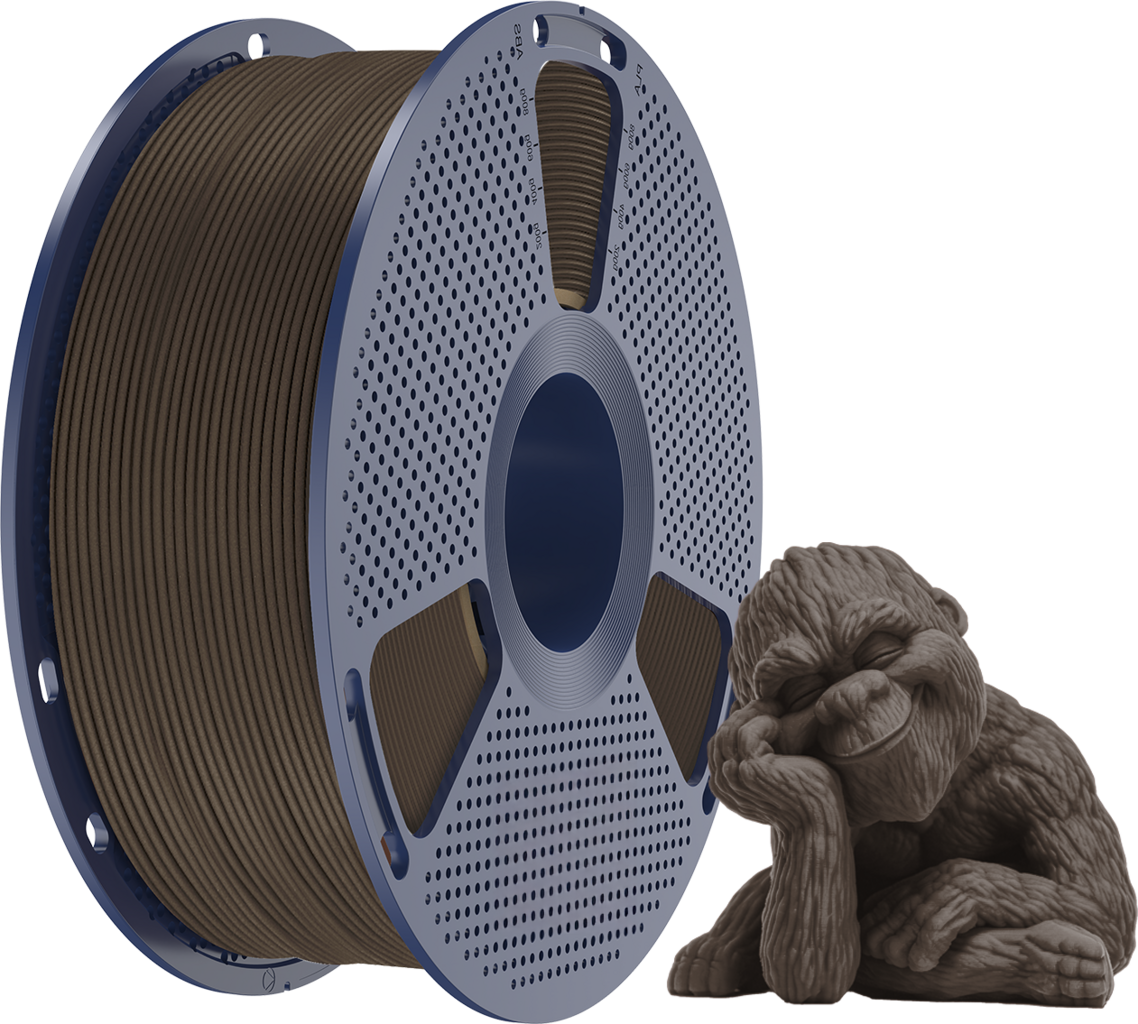 PLA Wood Filament SUNLUlta on PLA-materiaali, joka on sekoitettu 15 % puujauhetta, ja se yhdistää PLA:n hyödyt sekä oikean puun estetiikan ja tuntuman. Filamentti on helppokäyttöinen ja sen jäykkyys ja lujuus ovat korkeita.
