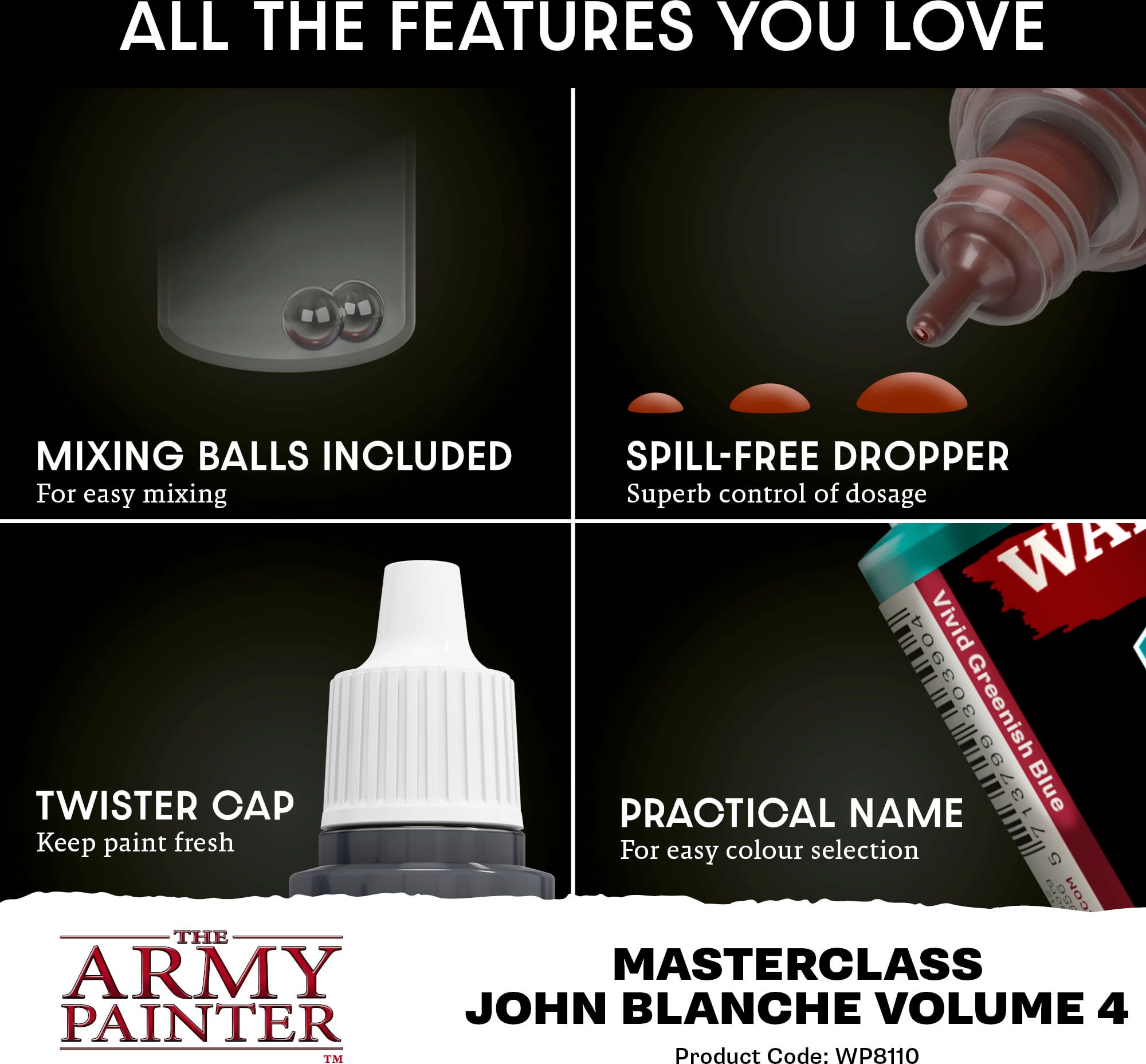 The Army Painter Masterclass: John Blanche Vol. 4 vie Grimdark-värimaailman sen hehkuvaan ytimeen. Tämä setti, joka on vastakohta Volume 3:n kylmille, spektraalisille sävyille, vapauttaa raakoja ja fyysisiä värimaailmoja – täynnä lämpöä, rappiota ja peittelemätöntä intensiivisyyttä. Yhteistyössä Grimdark-ikonin John Blanchen kanssa kehitetty Volume 4 laajentaa Masterclass-sarjan emotionaalista spektriä kohti lämpöä, aggressiota ja elävää rauhattomuutta.