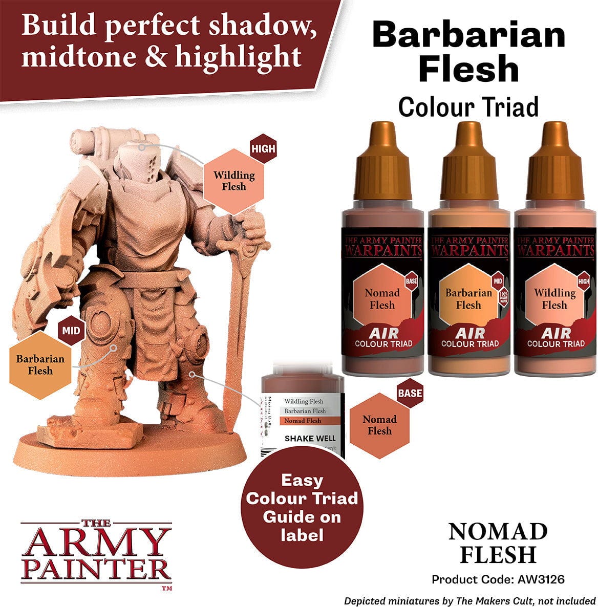 Erityistä on harkittu Triad System. Jokainen väri on osa sovitettua sarjaa, joka koostuu Base-, Midtone- ja Highlight-sävyistä. Näin syntyy luonnollisia valonsiirtymiä ja voimakkaita kontrasteja, jotka saavat armeijasi näyttämään hyvältä ja erottumaan pelipöydällä.